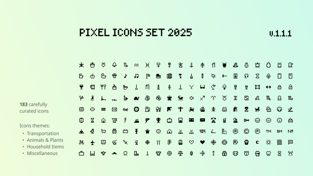 The set will work well complementary to Pixelarticons from Halfmage, which your author is inspired by.